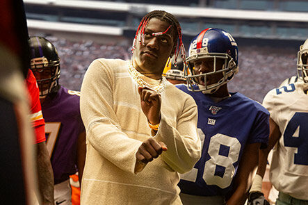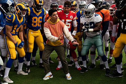 What starts as a typical Patrick Mahomes football huddle becomes a veritable showdown between athletes, hip-hop stars, cultural icons, and an everyday gamer. As each star boasts on how they’re going to achieve gridiron greatness, the film is packed with jokes, dance moves, easter eggs, a smoke bomb, and, yes, even a jet ski.