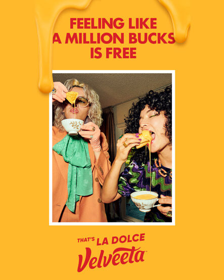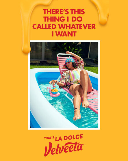 They don’t think about ways to earn pleasure—they know they deserve to bask in it each and every day. No rules, no judgments. Just a good time all day everyday. They don’t seek out a mild meal or snack…they go all in. With that in mind, we didn’t uncover an idea, but a very simple and big truth: Velveeta is so much more than just a food—it’s an ethos. It’s a flag that proudly emboldens people to live their way with one simple rule to guide them: follow your pleasure above everything else.